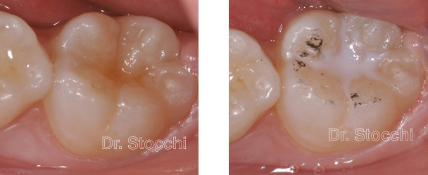Nella profondità dei solchi possono insinuarsi la placca ed i residui di cibo e le setole dello spazzolino non riescono a penetrare per rimuoverli. Per questo è consigliabile effettuare le sigillature che vengono eseguite con un materiale resinoso simile a quello delle otturazioni estetiche. Le sigillature, come dice il nome, sigillano i solchi ed impediscono la penetrazione di batteri e cibo, lasciando una superficie liscia e facilmente pulibile.